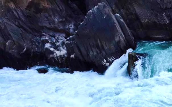 绝壁之上的观景台可俯瞰金沙江与哈巴雪山,江水如怒龙咆哮,震撼人心。